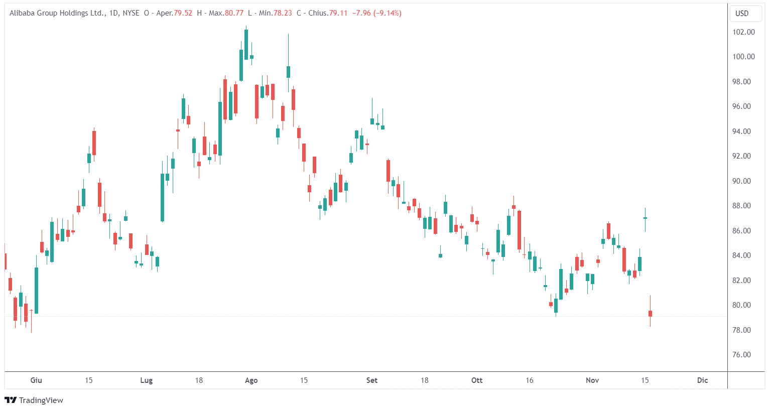 Mentre il presidente Joe Biden e Xi Jinping sono insieme al vertice APAC a discutere dei loro legami, la guerra dei chip USA-Cina ha innescato una delle più sorprendenti inversioni di strategia aziendale mai viste. Giovedì, Alibaba Group Holding ha ritirato i piani di scorporazione e quotazione in borsa della sua unità cloud da 11 miliardi di dollari. Il crollo delle azioni di Alibaba che ha seguito ha cancellato 20 miliardi di dollari di valore di mercato. Il titolo è sceso del 9,1% nelle contrattazioni di New York, il calo più grande in oltre un anno.