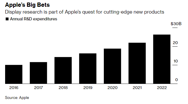 I display microLED saranno i primi schermi di Apple progettati e sviluppati interamente. La società attualmente acquista schermi da una serie di produttori, tra cui Japan Display Inc., Sharp Corp. e BOE Technology Group Co., oltre a Samsung e LG.
