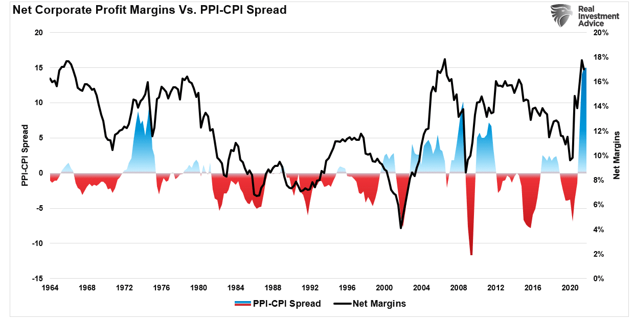I datori di lavoro sono in una posizione difficile quando si tratta di proteggere i margini di profitto. Il differenziale tra i prezzi di produzione e quelli al consumo suggerisce che le società non possono trasferire completamente l’aumento dei costi. Ciò significa che c’è una notevole pressione sui margini di profitto delle aziende.