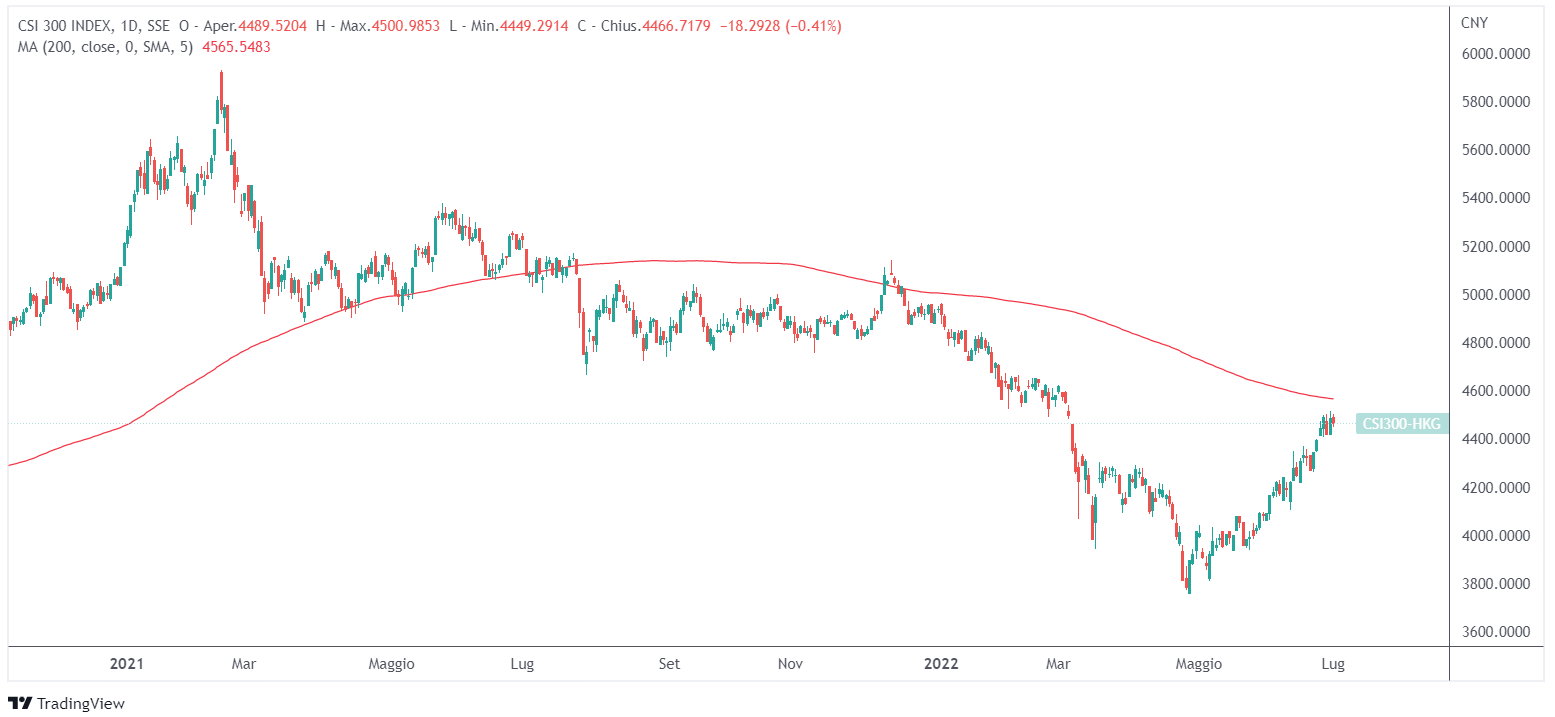 Un recente allentamento delle restrizioni covid ha cancellato parte delle perdite del CSI 300, che si trova in un mercato ribassista da inizio anno. L’indice CSI 300 è in rialzo di circa il 19% dal minimo di aprile dopo che il governo di Pechino ha revocato i lockdown nelle principali città. Questa è una delle performance migliori a livello globale.