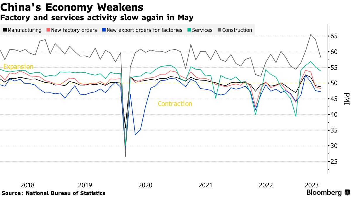 I dati di mercoledì hanno mostrato che l’attività manifatturiera cinese si è contratta per il secondo mese consecutivo a maggio, offrendo l’ultima prova che la ripresa post-Covid è in fase di stallo. Il pessimismo abbonda poiché una lenta ripresa economica, l’indebolimento dello yuan e le tensioni con gli Stati Uniti lasciano gli investitori con pochi motivi per acquistare.