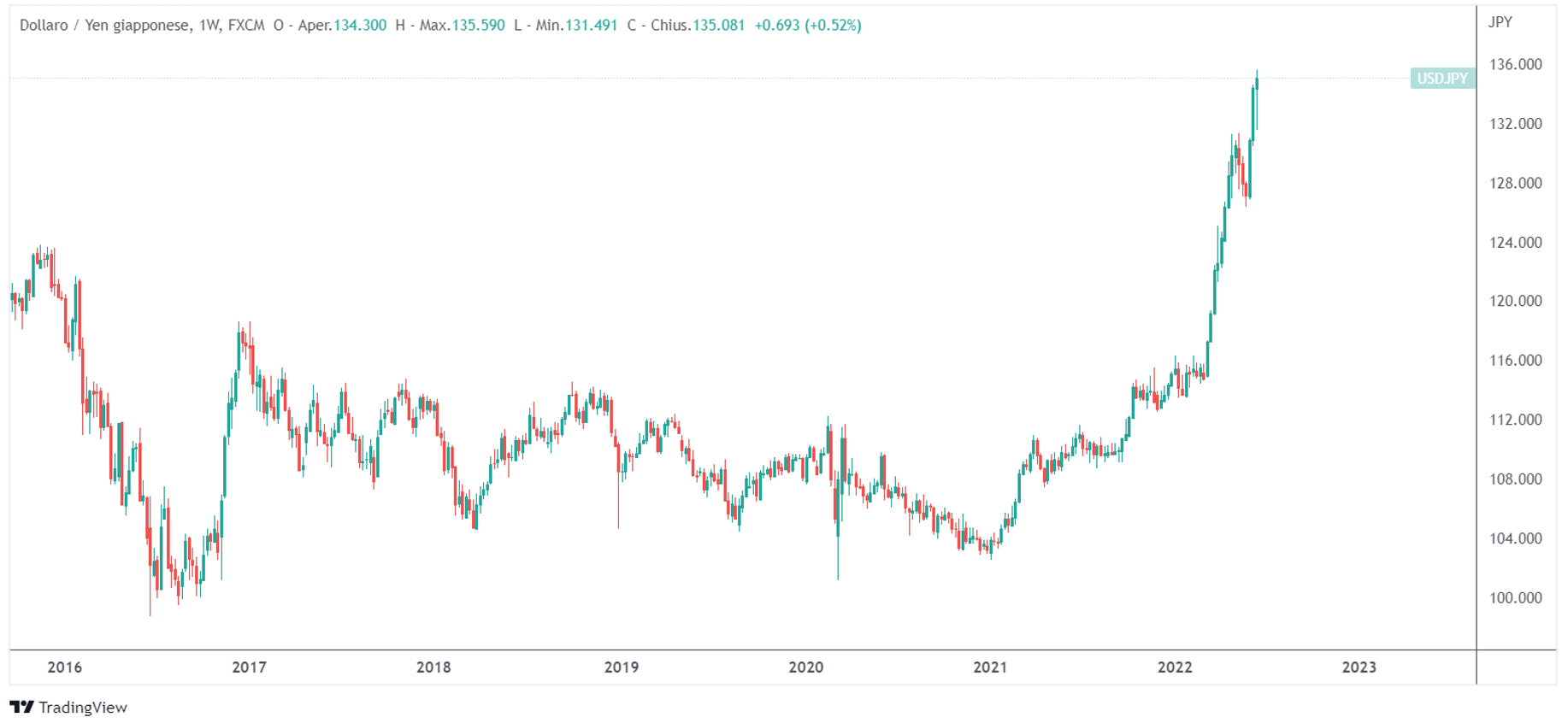 La Bank of Japan invece, ha mantenuto le sue impostazioni accomodanti nonostante la forte pressione al ribasso sullo yen e sul mercato obbligazionario. La valuta giapponese ha raggiunto il livello più basso degli ultimi 24 anni e la BOJ ha dichiarato di aver messo il tasso di cambio nella sua lista dei rischi.