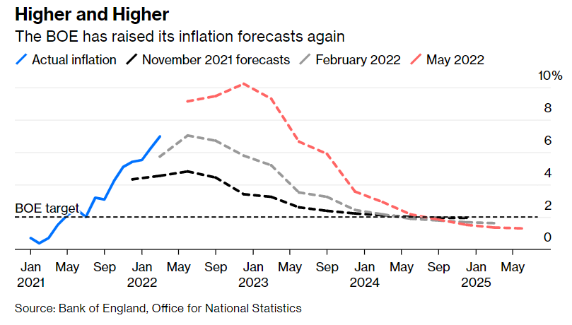 Il compito della Bank of England è ancora più difficile visti gli aumenti fiscali introdotti dal Cancelliere Rishi Sunak. Durante l’ultima conferenza stampa, il governatore Bailey ha esternato la sua preoccupazione per un’inflazione a due cifre che aumenta il rischio di una recessione.