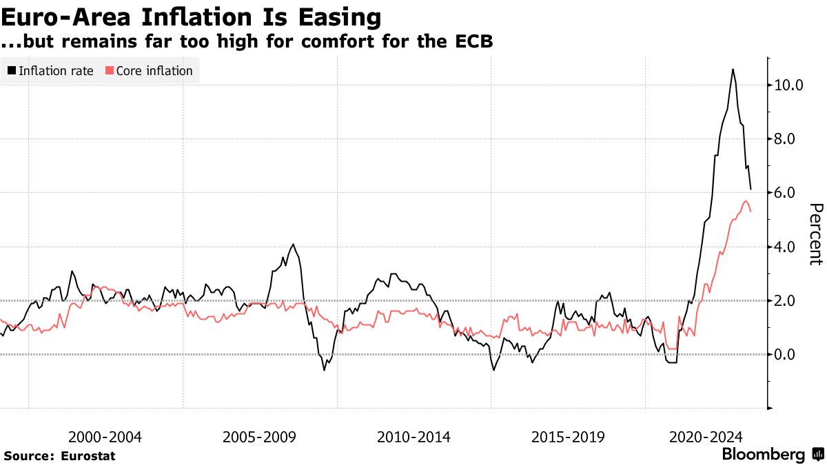 Un giorno dopo che la Federal Reserve ha lasciato invariati i costi dei prestiti dopo 10 aumenti consecutivi, la presidente della BCE Christine Lagarde è stata chiara nel dire che il lavoro non è finito. L’inflazione nella zona euro è destinata a rimanere “troppo alta per troppo tempo”, ha detto.