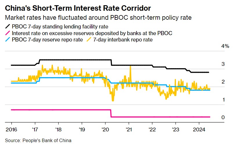 Dall’altro lato, il reverse repo è un tasso di interesse a breve termine, spesso a sette giorni. Funziona come un prestito di breve durata che la PBOC utilizza per gestire la liquidità giornaliera nel sistema bancario. Pensate al reverse repo come a una soluzione rapida per le banche che hanno bisogno di denaro per pochi giorni.
