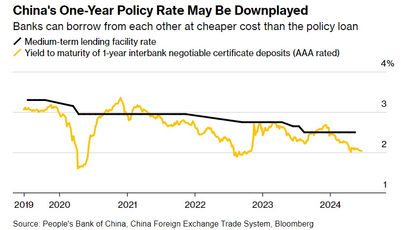 La PBOC sta anche preparando il terreno per mettere in secondo piano uno dei suoi strumenti principali: il MLF. Introdotti un decennio fa, questi prestiti sono stati il canale principale per iniettare liquidità nell’economia. Ma ultimamente, la domanda di questi fondi è diminuita, poiché è diventato più economico per le banche prestarsi denaro tra di loro.