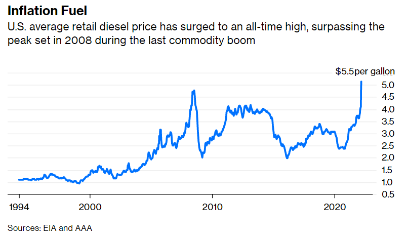 L’impennata dei prezzi dei carburanti è importante a causa della loro ubiquità nella vita moderna. Il rialzo dei prezzi colpirà tutti, aumentando le pressioni inflazionistiche che stanno già raggiungendo i massimi da diversi decenni. Più del costo del petrolio, l’aumento vertiginoso dei prezzi del diesel dovrebbe essere la principale preoccupazione delle banche centrali.