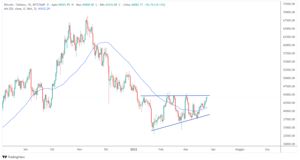 Bitcoin ha raggiunto la soglia dei 44.000 per la prima volta dopo un mese. Il token si trova in una fase di consolidamento dall’inizio del 2022. Sembra però che stiano emergendo dei segnali rialzisti dalle crypto. Molti investitori si stanno chiedendo se siamo finalmente vicini…