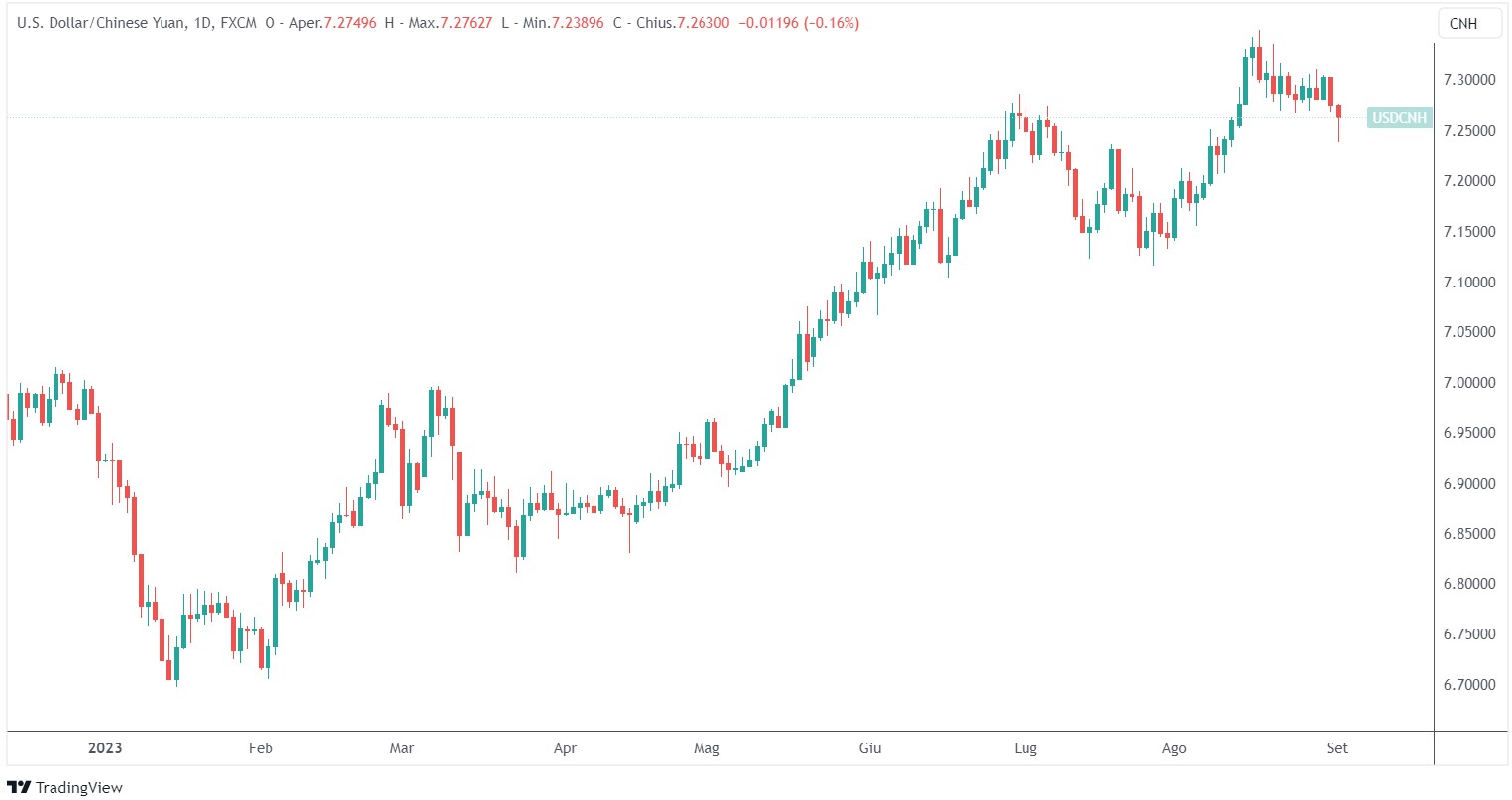 La Cina ha aumentato il sostegno allo yuan tagliando il rapporto di riserva obbligatoria. Le istituzioni finanziarie dovranno tenere in riserva solo il 4% dei loro depositi in valuta estera a partire dal 15 settembre, rispetto all’attuale livello del 6%. Ciò aumenta di fatto l’offerta di valuta estera nel mercato locale.