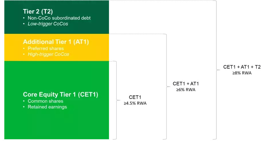 Il CET1 è una delle tre categorie di capitale utilizzate nel calcolo del “rapporto di capitale totale” delle banche. Le altre due categorie sono il Tier 1 (core capital) e il Tier 2 (supplementary capital), che includono altri tipi di capitale, come le obbligazioni subordinate e i fondi di riserva.