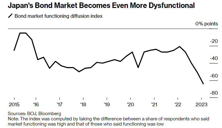 L’indagine trimestrale sul mercato obbligazionario della BOJ ha mostrato che un indicatore del funzionamento del mercato obbligazionario si è deteriorato fino a raggiungere un minimo storico all’inizio di questo mese, mantenendo vive le aspettative sulla necessità di ulteriori azioni.