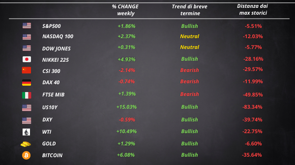 Allo stesso tempo, la curva dei rendimenti prosegue con il suo processo d’inversione. Ciò al mercato azionario non interessa. Gli indici americani infatti chiudono un’altra settimana in positivo.