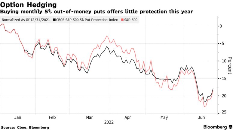 Gli improvvisi rally caratteristici di quest’anno sono diventati la rovina degli hedger, che stanno pagando a caro prezzo le opzioni put che spesso non riescono a produrre guadagni. Una semplice strategia di protezione che consiste nel possedere il 5% di put out-of-the-money sull’S&P 500 ha perso quasi quanto l’indice stesso quest’anno. Ciò è in netto contrasto con il crollo di marzo 2020, quando la strategia ha reso il 2,2%.