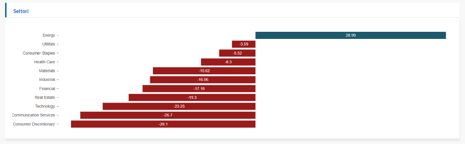 Il petrolio, dopo la caduta di inizio settimana, ha messo in scena un drammatico rimbalzo venerdì, salendo fino al 3% e chiudendo a malapena in rosso. Inutile dire che l’energetico rimane il settore con le migliori performance del 2022.