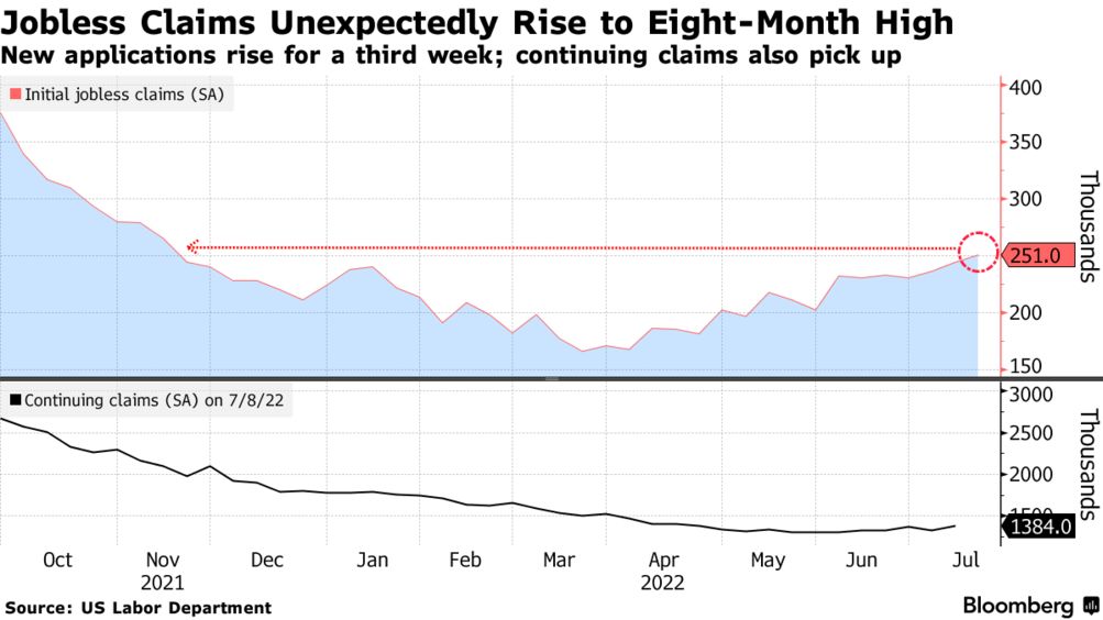 Segnali di deterioramento delle condizioni economiche sono arrivati anche dal mercato del lavoro e quello immobiliare. Il numero di americani che hanno chiesto l’indennità di disoccupazione la scorsa settimana è salito al livello più alto degli ultimi otto mesi. La media a 4 settimane, che smussa l’alta volatilità dei dati, è aumentata di 4.500 unità.