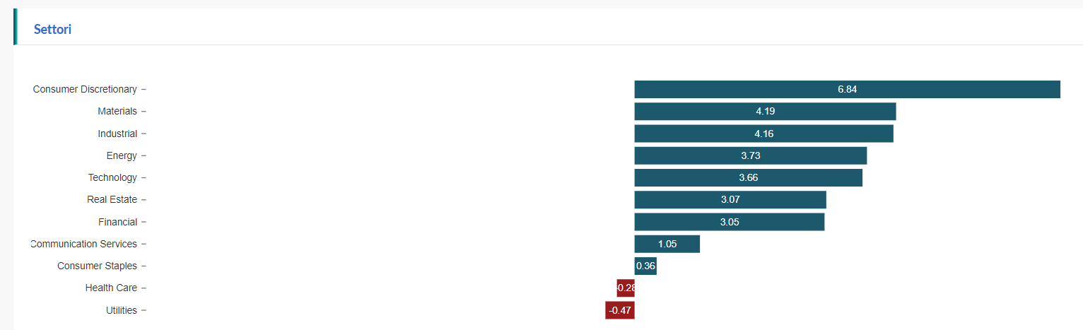 performance settimanali settori S&P 500