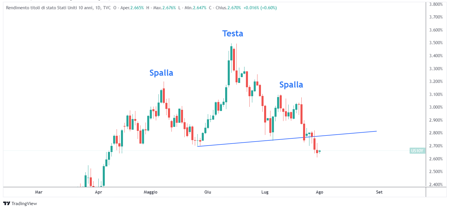 rendimenti 10 anni USA testa spalle