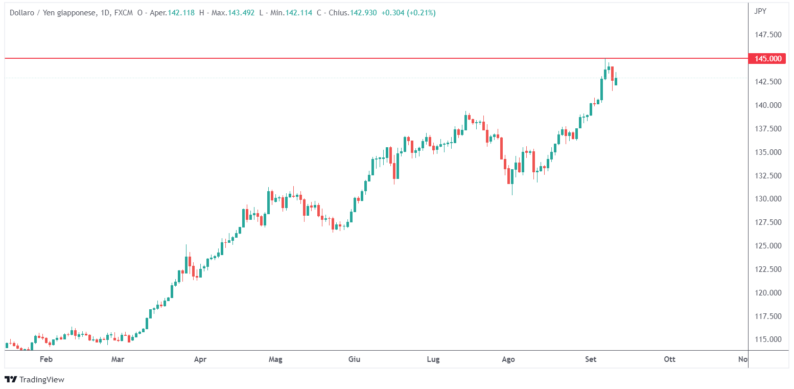 Il tasso di cambio dollaro-yen ha sfiorato i 145, un livello che non si vedeva da 24 anni. I responsabili politici stanno iniziando a preoccuparsi per il calo della valuta giapponese.