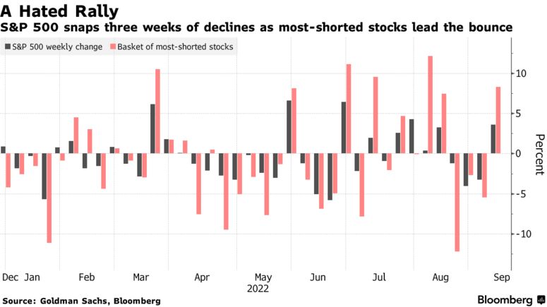 Gli short sellers hanno dovuto coprire le loro posizioni acquistando le azioni (short covering). La necessità di ridurre le perdite ha portato a un balzo dell’8,2% nel paniere di Goldman Sachs Group Inc. dei titoli con lo short interest più alto.
