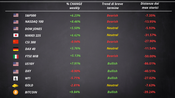 Le grandi protagoniste della settimana sono state le aziende cinesi. Dopo essere state vittime del più grande outflow degli ultimi anni, le stock cinesi hanno messo in atto un rimbalzo epico. Le tech sono state quelle che hanno goduto di più del cambio di sentiment improvviso. Il governo cinese ha infatti promesso di essere più clemente sul fronte delle normative aziendali e che si impegnerà a sostenere i mercati finanziari e l’economia.