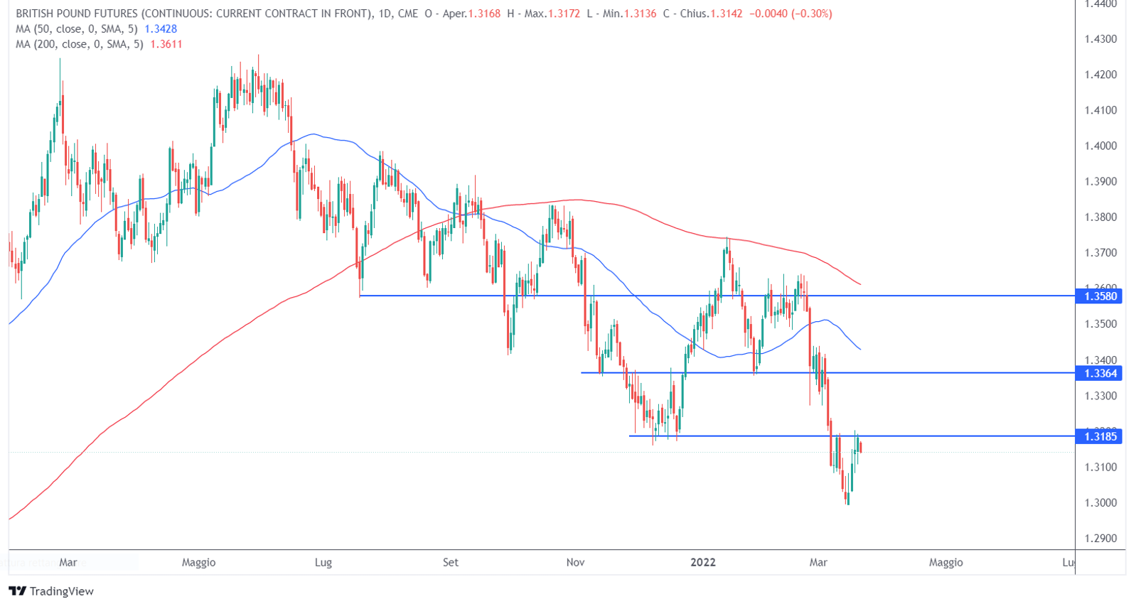 Oltre alla decisione del FOMC ci sono state anche quelle della Bank of England e della Bank of Japan. La BoE ha deciso di alzare i tassi per la terza volta consecutiva, riportando gli oneri finanziari ai livelli pre-pandemia. Il pound ha guadagnato, approfittando anche della debolezza del dollaro. Tuttavia il trend rimane fortemente ribassista.