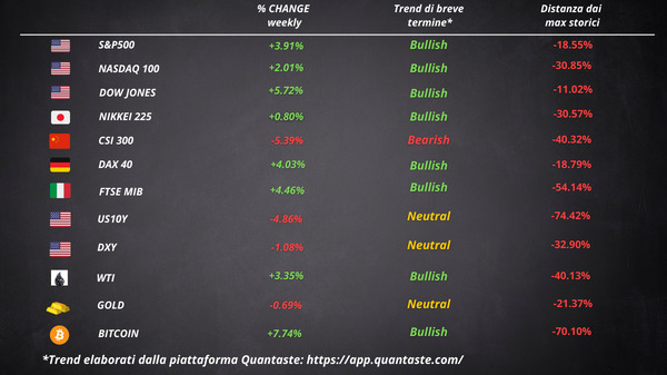 Le azioni statunitensi hanno chiuso una settimana turbolenta con un notevole guadagno. Le chiacchiere su una “pausa” o un “mini-pivot” della Fed hanno fornito la narrativa per il panic buying delle azioni.