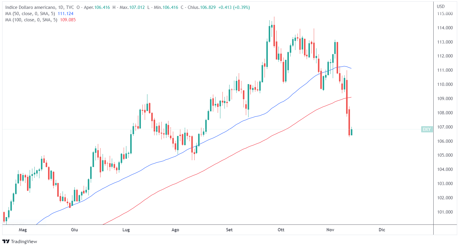 Il dollaro ha affrontato il più grande calo settimanale da marzo 2020, rompendo al di sotto della sua media a 50 e 100 periodi.