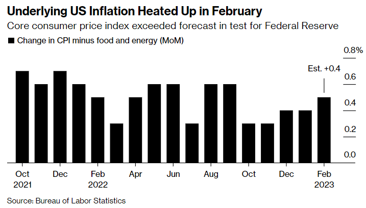 I prezzi al consumo sottostanti negli Stati Uniti hanno registrato l’aumento più grande in cinque mesi a febbraio, costringendo i funzionari della Federal Reserve a una scelta difficile alla riunione di questa settimana.