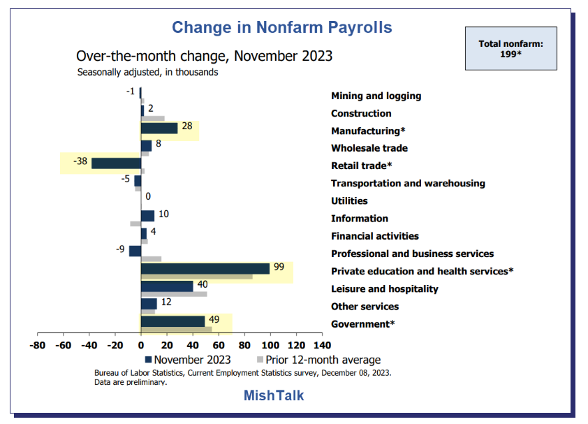 L’assistenza sanitaria, il tempo libero, l’ospitalità e le assunzioni governative, oltre alla ripresa del settore manifatturiero dopo la risoluzione dello sciopero della United Auto Workers, hanno trainato l’aumento dei salari. Altre categorie hanno mostrato una crescita tiepida o un netto calo.