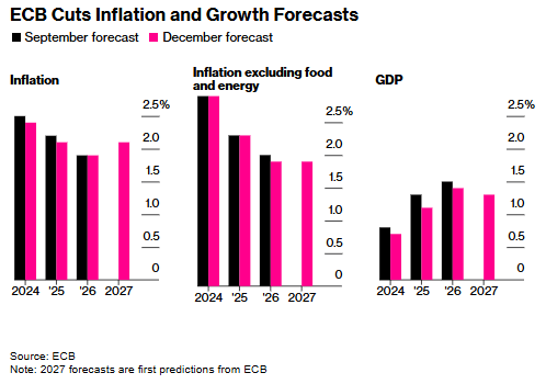 La Banca Centrale Europea ha ridotto i tassi di interesse per la terza volta consecutiva, segnalando ulteriori tagli il prossimo anno mentre l’inflazione si avvicina all’obiettivo del 2% e l’economia continua a mostrare segni di debolezza. Il tasso sui depositi è stato tagliato di un quarto di punto al 3%, come previsto dalla maggior parte degli analisti. Questo porta il totale dell’allentamento monetario da giugno a 100 punti base.