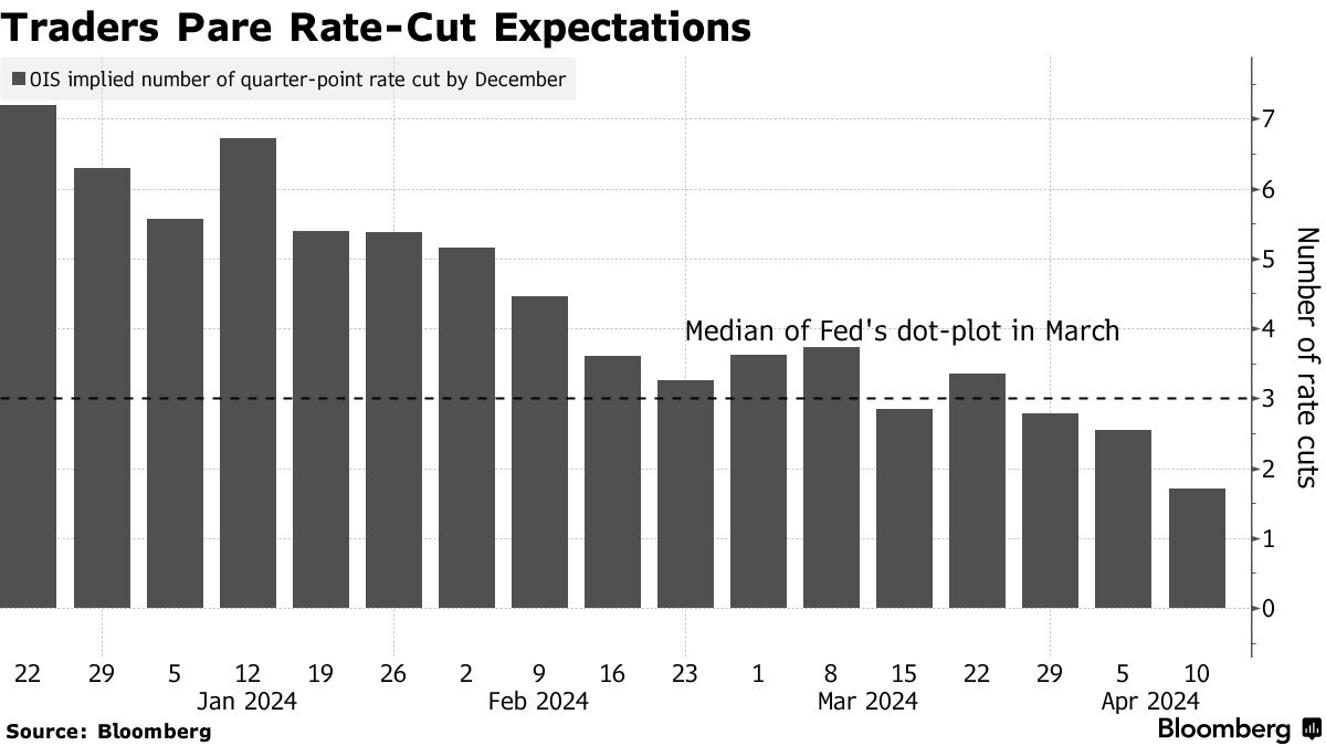 I recenti dati sull’inflazione hanno messo in dubbio le previsioni di possibili tagli dei tassi di interesse da parte della Fed per l’anno in corso. Il mercato ora prevede meno di due riduzioni, un significativo passo indietro rispetto alle precedenti scommesse di oltre 150 punti base di allentamento.