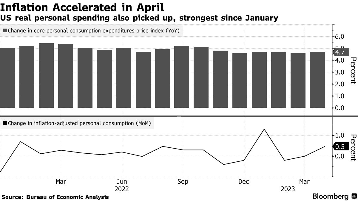 L’indice dei prezzi della spesa per consumi personali e una misura fondamentale che esclude cibo ed energia, gli indicatori di inflazione preferiti dalla Fed, hanno entrambi superato le proiezioni. La spesa per i consumi, corretta per i prezzi, è aumentata dello 0,5%, l’aumento più forte dall’inizio dell’anno.