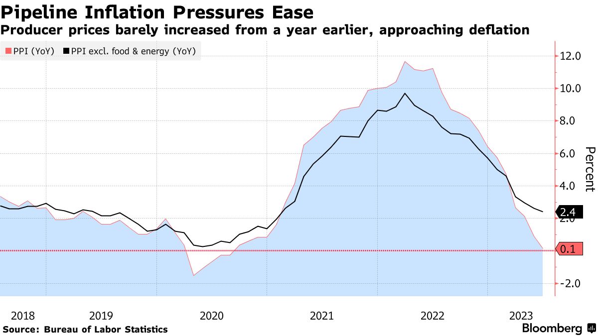 Il giorno dopo l’indice dei prezzi al consumo degli Stati Uniti, anche i prezzi alla produzione sono scesi al di sotto delle aspettative. L’indice PPI per la domanda finale è aumentato dello 0,1% rispetto all’anno precedente, l’aumento più piccolo dal 2020.