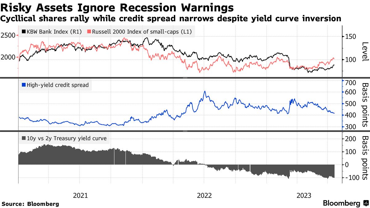 Quello che è iniziato come un rally guidato quasi interamente da una manciata di megacap tecnologiche si è trasformato in un’impennata intersettoriale alimentata dall’affievolirsi dei timori di recessione. Dalle small cap all’energia e alle banche, le azioni economicamente sensibili stanno guidando l’ultimo avanzamento.