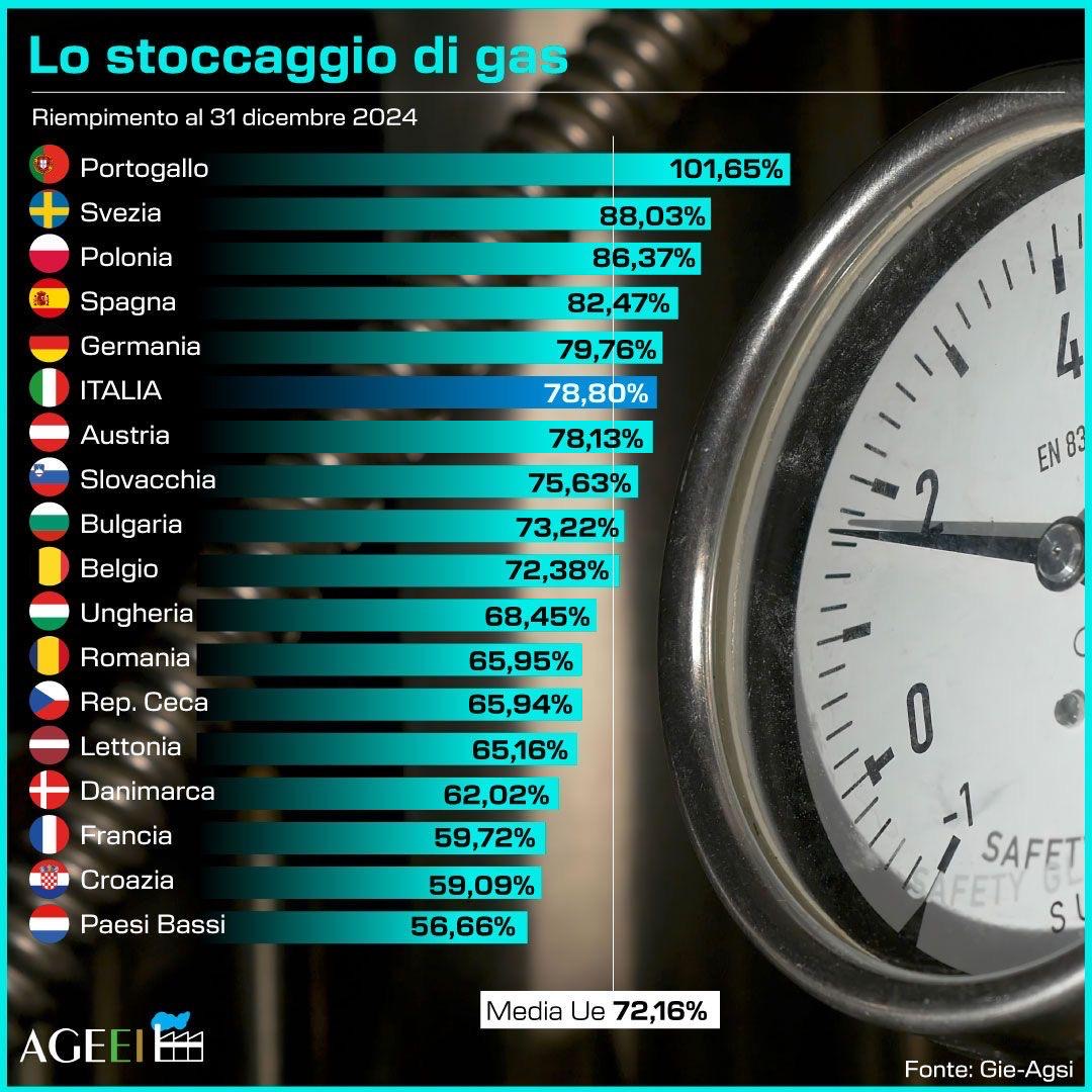 Il prezzo del gas in Europa si è assestato sotto i 50 euro al megawattora, ma rimane vicino ai massimi toccati negli ultimi 14 mesi. I livelli di stoccaggio sono attualmente al 72% su scala continentale. La Germania guida con il 79,7%, seguita dall’Italia con il 78,8%. Questi numeri sono leggermente superiori alla media stagionale del 69%, ma il contesto resta delicato. Con l’inverno ormai in pieno corso, si prevede un aumento della domanda che potrebbe mettere sotto pressione le riserve.