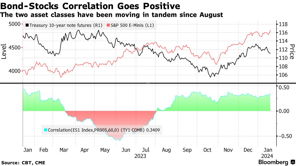 Ma un rally azionario guidato dai titoli tecnologici significa che una parte sempre più ampia dell’indice di riferimento è strettamente legata alle prospettive di utili a lungo termine, e quindi più sensibile all’aumento dei rendimenti. La correlazione tra l’indice S&P 500 e i titoli del Tesoro di riferimento è positiva dall’agosto dello scorso anno.