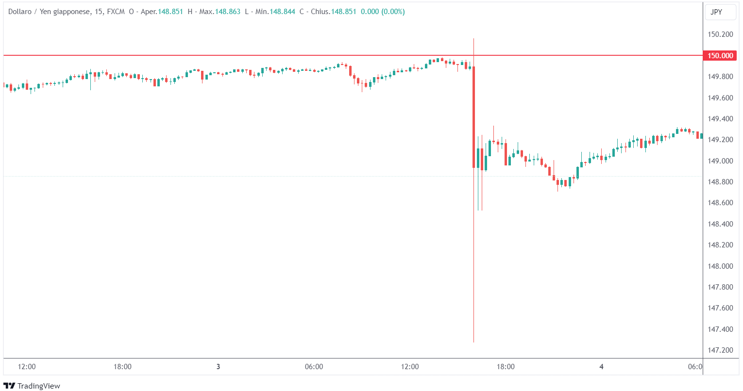 Al momento non c’è stata alcuna conferma formale dell’intervento delle autorità giapponesi. Il Vice Ministro delle Finanze Masato Kanda si è astenuto dal commentare se vi fosse stato un intervento sul mercato dei cambi. “Continueremo con la posizione esistente sulla nostra risposta a movimenti valutari eccessivi”, ha detto.