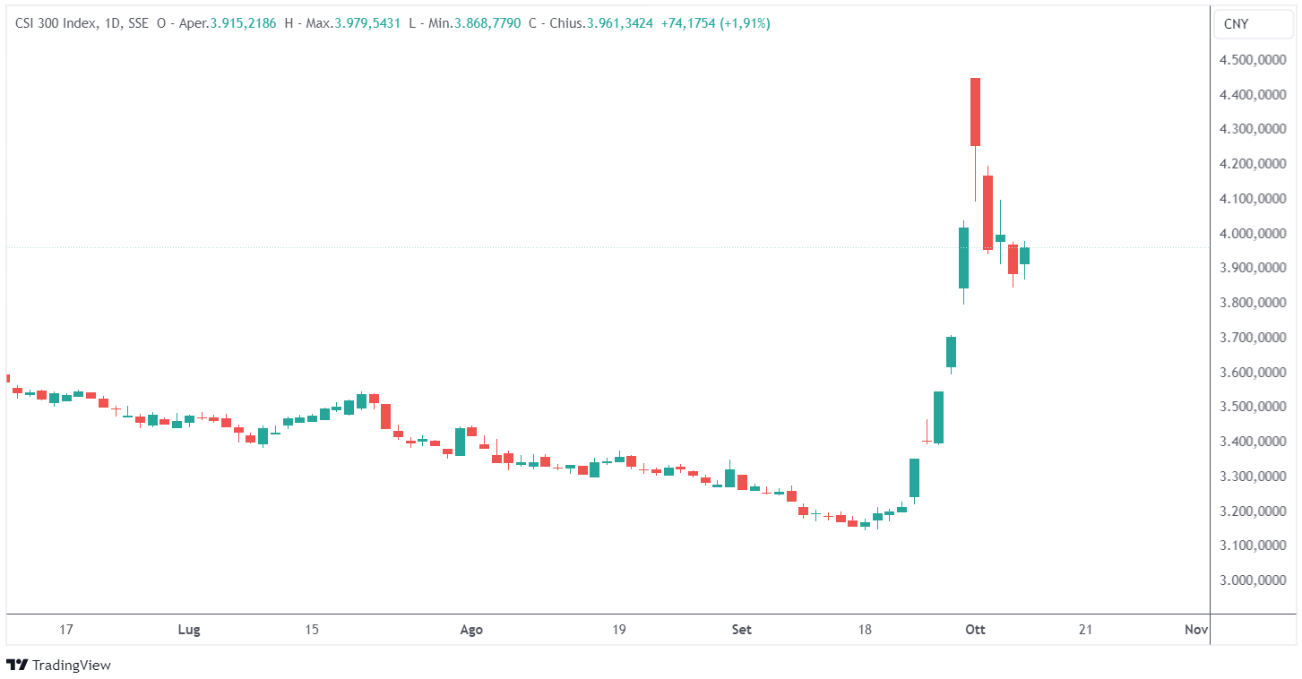 In Asia, la situazione è stata molto meno rosea: i mercati di Shanghai e Hong Kong hanno subito una perdita combinata di circa 500 miliardi di dollari. La volatilità settimanale dell’indice CSI 300 è stata la più alta dal 2015, con gli investitori che hanno richiesto più stimoli rispetto a quelli già promessi dal governo cinese.