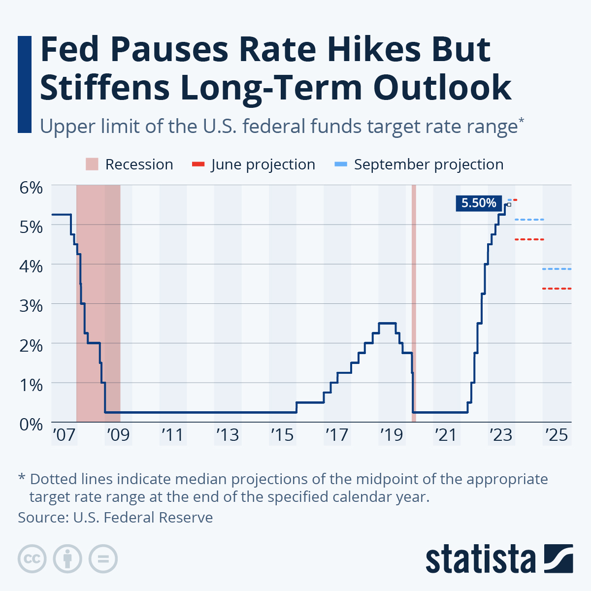 Il FOMC ha aumentato i tassi in modo aggressivo da zero nel marzo 2022 a oltre il 5% a luglio. Essendo arrivati così lontano così rapidamente, i funzionari stanno procedendo con cautela, poiché i rischi di una stretta insufficiente e di una stretta eccessiva stanno diventando più bilanciati.