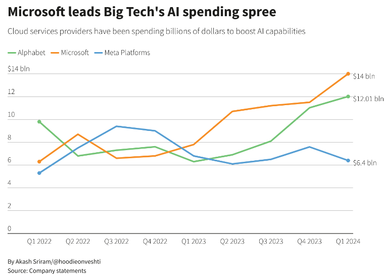 Sotto la guida visionaria di Satya Nadella, Microsoft ha infuso la tecnologia di OpenAI in tutta la sua gamma di prodotti, da Azure a Office, passando per Bing e oltre. Questa mossa si sta rivelando incredibilmente proficua, con l’IA che non solo migliora i prodotti esistenti ma crea nuove opportunità di abbonamento e servizi aggiuntivi per i clienti.