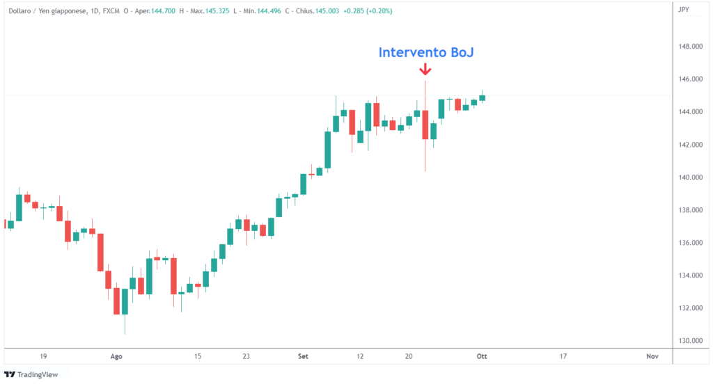 La sterlina non è l’unica valuta ad accusare i contraccolpi di un dollaro forte. Due settimane fa, la Bank of Japan è dovuta intervenire direttamente nel mercato valutario quando lo yen ha sfiorato i 146 per dollaro, mettendo momentaneamente in pausa il calo. Adesso il tasso di cambio USD/JPY si trova di nuovo vicino ai livelli di intervento.