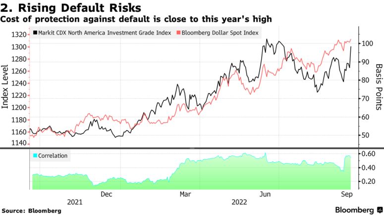 Il crescente rischio di insolvenza è stato strettamente correlato all’impennata del dollaro, che sta beneficiando del rapido aumento dei tassi di interesse della Fed e delle prospettive di crescita globale più deboli.