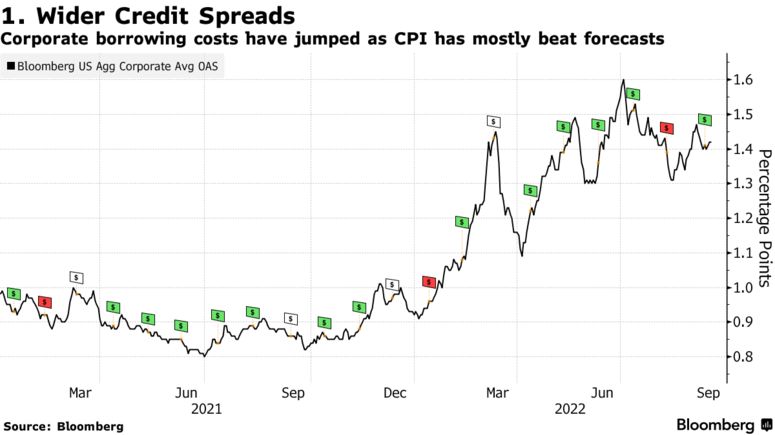 La differenza tra il rendimento medio delle obbligazioni societarie statunitensi investment grade e i Treasury privi di rischio è balzata di circa il 70% nell’ultimo anno, facendo aumentare i costi di finanziamento per le imprese.