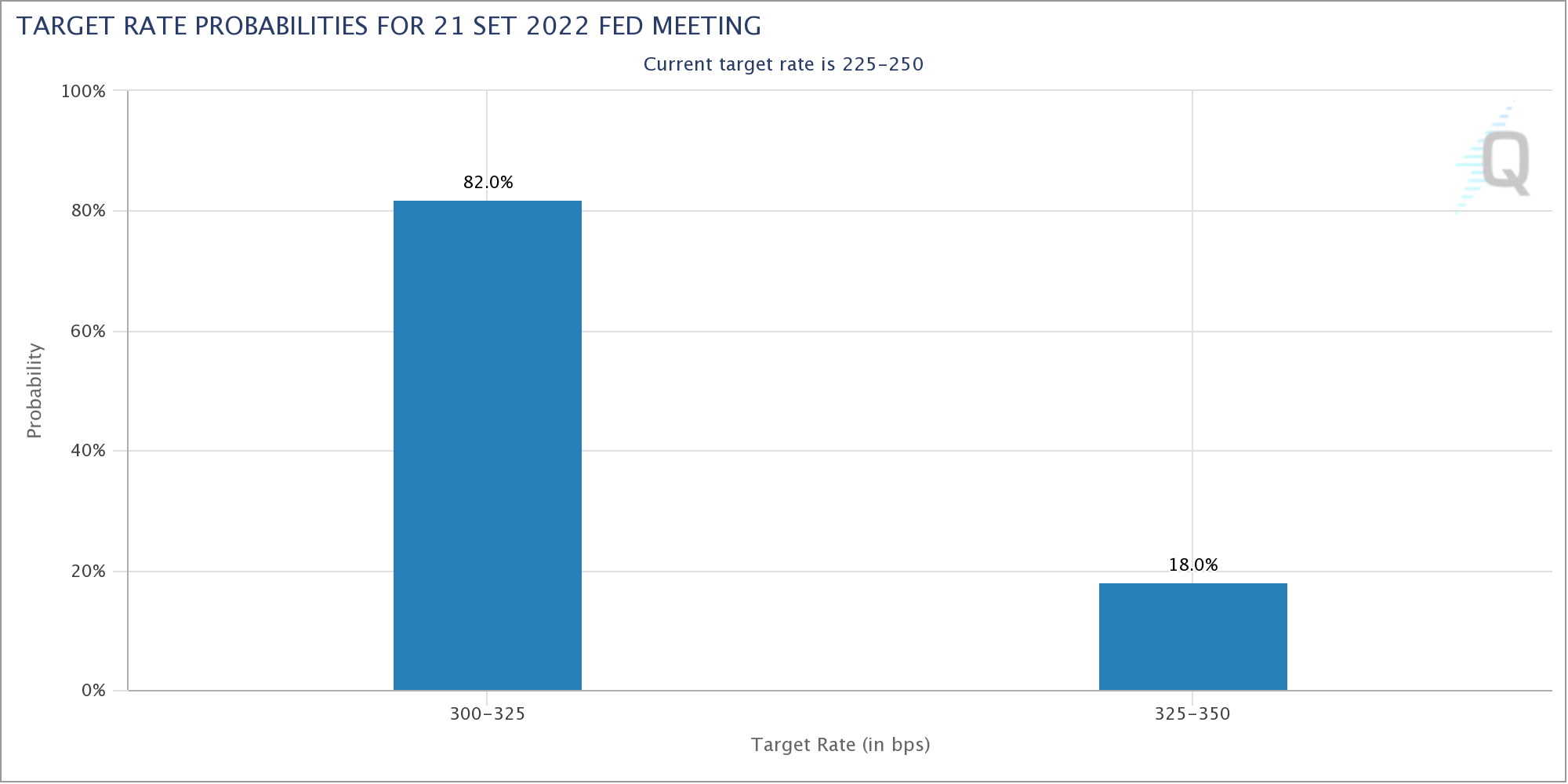 Secondo il mercato quindi, la Fed non è vicina al punto in cui deciderà di rallentare con gli aumenti dei tassi. Il mercato sta scontando una probabilità non trascurabile di un aumento di 100 punti base alla riunione del FOMC di oggi. Un aumento di questa entità non si vede dagli anni ’80.