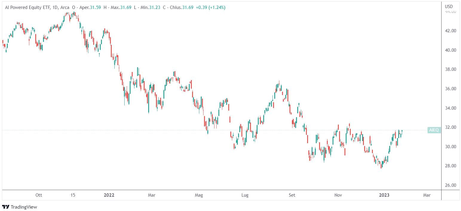 Se si espande l’orizzonte temporale, la sovra performance di AIEQ viene annullata. Dal suo inizio nel 2017, l’ETF ha consegnato agli investitori circa il 41%. Allo stesso tempo l’S&P 500 ha registrato oltre il 72%.