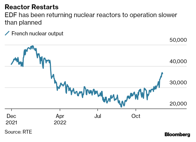 Mentre il più ampio mercato elettrico francese non mostrava molti disagi, lo stesso non si poteva dire per Electricite de France SA. Di una serie di riavvii nucleari programmati durante il fine settimana, solo uno è andato a buon fine.