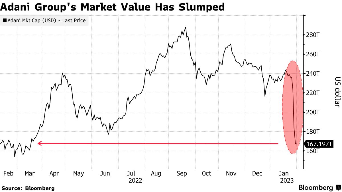 Il crollo di Adani Group cancella 74 miliardi di dollari