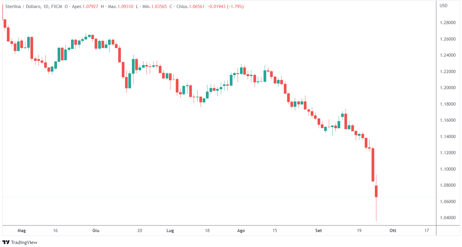 Le perdite della sterlina sono state accelerate dall’annuncio del piano fiscale del nuovo governo di Liz Truss, che prevede di tagliare 45 miliardi di sterline (49 miliardi di dollari) di tasse e di spendere più di 60 miliardi di sterline per limitare i prezzi dell’energia .