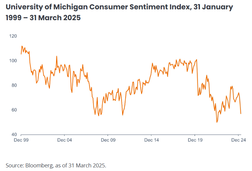 Un’altra spia importante arriva da “Main Street”. L’indice di fiducia dell’Università del Michigan è crollato nelle ultime settimane. I consumatori si aspettano un’inflazione media del 5% nei prossimi dodici mesi. Un livello alto, che riflette il timore di vedere aumentare i prezzi di beni importati.