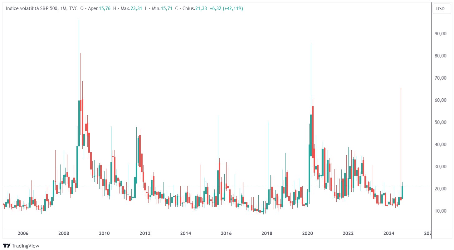 Il mese di agosto ha visto gli indici azionari statunitensi chiudere praticamente invariati, dopo aver recuperato una delle correzioni più drammatiche degli ultimi anni. Le prime settimane di agosto sono state turbolente. L’S&P 500 ha perso oltre il 6% in soli tre giorni. Il VIX, considerato l'”indicatore della paura” sui mercati, ha raggiunto il terzo picco più alto della sua storia. Gli investitori sono stati colti alla sprovvista da un mix di fattori, tra cui l’aumento a sorpresa dei tassi di interesse da parte della Bank of Japan e un rapporto sull’occupazione negli Stati Uniti deludente.